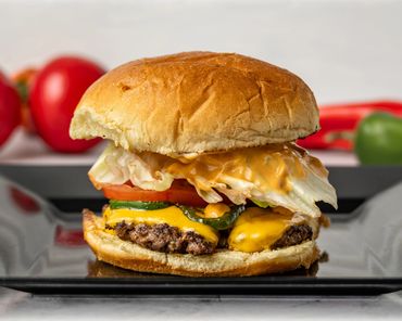 Grilled jalapenos, mayonnaise, lettuce, tomatoes, chipotle sauce, beef and American cheese